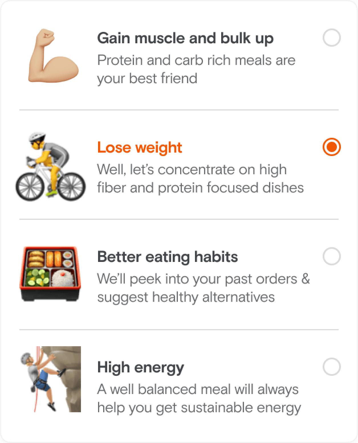 Most of our user did not associate healthy eating with food ordering. It was imperative to break free from this mould.