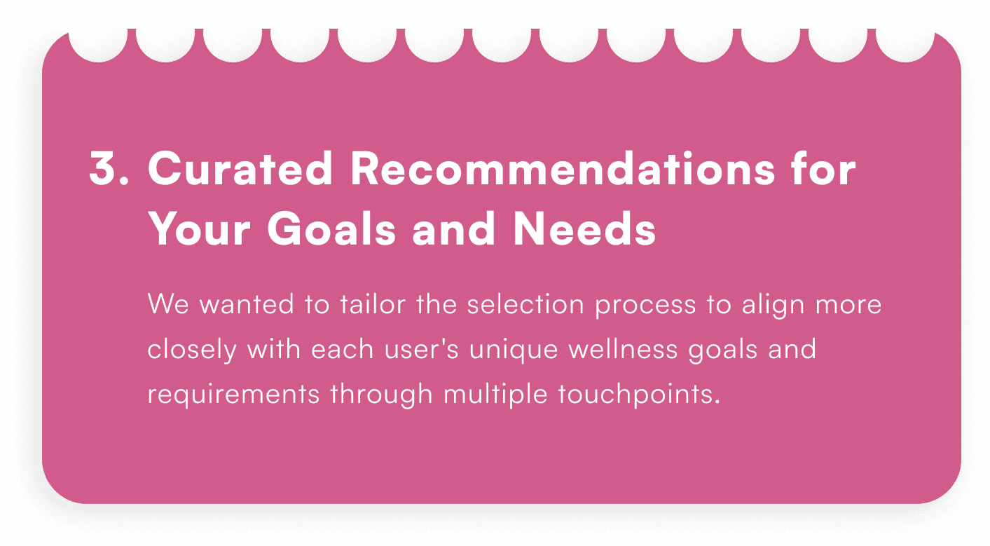 This quiz is designed to capture the users goals and dietary preference to curates a selection of products and recommendations that resonate with their unique situation.